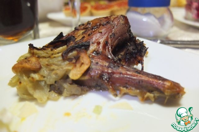 Запекать в течении часа, подливать вино, чтобы не пересушить.