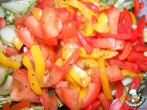 Как права beautiful woman, началось обострение мужского "шейного свихоза"! Да и надо бы подрежимить после праздников, а то ведь баловали себя любимых! А это баловство боком выходить, юбочка что-то стала плотновато сидеть, застегивается только на вздохе! И я внесла не большие добавления (just а little) в "легкий, как перышко, свежий, как майский ветерок, сочный, как райское яблочко, яркий, как вспышка света салат "Само совершенство"!