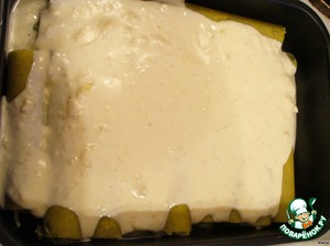 Залить трубочки соусом. Он должен их покрывать. Духовку разогреть до 200, запекать 30 минут. |