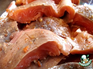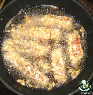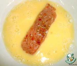 Рыбку достаем из маринада, окунаем во взбитое яйцо, стараясь сохранить приправку.