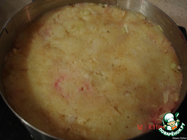 • Далее тертый картофель - 2 шт, поливаем соусом. Приминаем ложкой и так каждый раз!