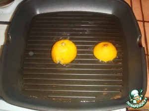 • 4. Обжарить на сковороде цедру лимона, срезом вниз до золотистой корочки. Лимон достать.