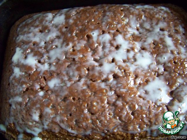 И ставим в духовку минут на 10 (смотрим по поверхности – она должна подрумяниться), выключаем огонь и оставляем минут на 20. Затем вытаскиваем и нарезаем на пирожные.