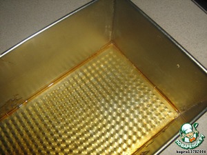 Теперь смазываем готовой карамелью дно и, по возможности, стенки формы.