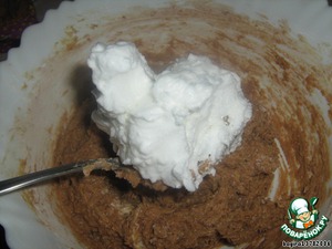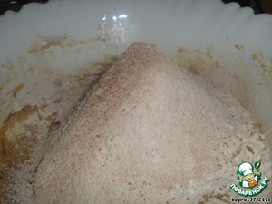 Теперь просеиваем эту смесь через ситечко в масляно-яичную смесь, и все перемешиваем.
