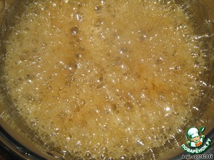 Сначала приготовим карамель. Для этого сахар и лимонный сок поставим на сильный огонь, и будем варить до получения золотисто-янтарного цвета. Только не переварите, иначе карамель будет горчить.