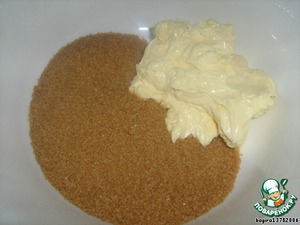 Сначала мягкое масло взбиваем с сахаром. Лучше взять коричневый сахар, чтобы придать десерту больший карамельный вкус. -