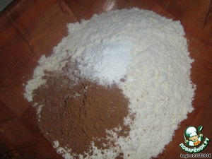 Смешиваем в отдельной посуде муку, какао, соль и разрыхлитель.