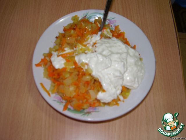 Оставшийся майонез перемешиваем с нашей начинкой.