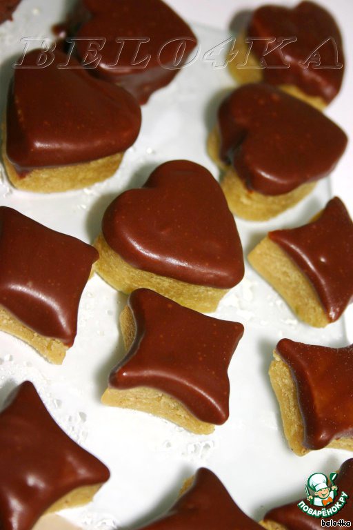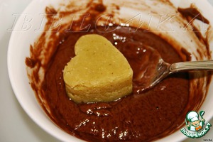 Каждое сердечко подсушенной стороной (т.е. тем, что было верхом) обмакиваем до середины в шоколад.