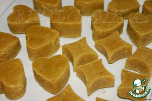 Итак, из подсушенного марципанового теста формочками для печенья вырезаем сердечки, звездочки, ромбики, квадратики, кружочки....что вашей душеньке угодно.