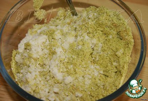 Теперь перемалываем фисташки. Я взяла соленые, просто тщательно их потерла в руках, тем самым удалив с них соль.