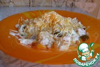 Рецепт из книжки "Золотая коллекция рецептов"... Название оставила оригинальное.. Вкусный салат из простых продуктов...