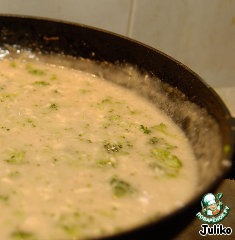 Когда соус сделан, добавляете брокколи и сыр, готовите несколько минут на среднем огне, помешивая, чтобы сыр расплавился.