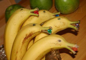 Берем банан, хвостик надрезаем, рисуем гелевой ручкой глазки - дельфинчик готов!