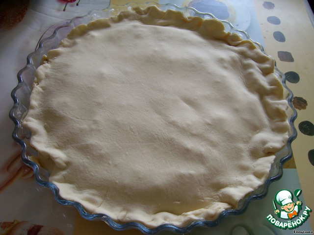 Накрываем сверху вторым слоем раскатанного теста, защипываем края.