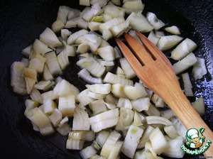 Нашинкованный лук обжариваем на оливковом масле до золотистого цвета