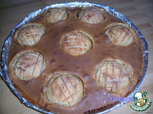Выкладываем тесто в форму и сверху выкладываем яблоки, обваленные в сахаре.