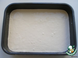 Форму для выпечки пирога лучше брать квадратную или прямоугольную (проще потом разрезать на квадратики). Форму слегка смазать растительным маслом и выливаем 70% теста.