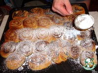 Сделали тесто и поставили в тeплое место. Поднимется, обмять. И так два - три раза. Раскатать тесто. Посыпать маком, кокосовой стружкой и корицей. Скрутить в рулет. Порезать на равные части. Положить булочки на противень и выпекать 20 минут при 180 градусах. Посыпать булочки сахарной пудрой. Горячие булочки мне нравятся с молоком.