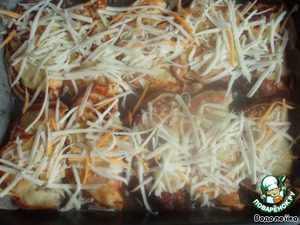 • Выложить на противень, посыпать тертым сыром и поставить в духовку или микроволновку до расплавления сыра.