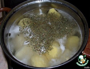 1. Отвариваем картофель, добавляя при варке сушеный базилик.