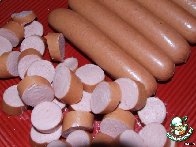 6. Готовое тесто еще 2-3 минуты замешиваем и делаем оладушки, во внутрь добавляя нарезанные сосиски. Должно получиться что-то подобное.