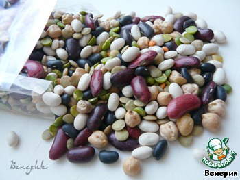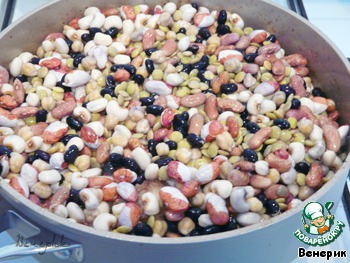 Предварительно, за три часа до готовки, замочить бобовую смесь холодной водой.