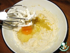 Сливочному маслу даём размягчиться при комнатной температуре, хорошенько разминаем ложкой и взбиваем с сахаром до получения белого крема (для ускорения процесса я использовала сахарную пудру). Ещё я добавила десертную ложку рома – при выпекании алкоголь испаряется, а аромат появляется необыкновенно тонкий, красивый… Добавляем цедру 1/2 лимона, яйцо, щепотку соли, хорошенько взбиваем.