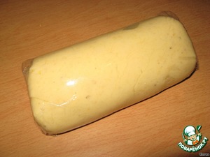 Готовому тесту придаём форму батона (пенёчка, брёвнышка), заворачиваем в пищевую плёнку и отправляем на 1 час в холодильник (я своё положила в морозилку минут на 40, оно прекрасно охладилось, а потом уже долёживало в холодильнике).
