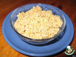 Также вместе с мукой добавляем измельчённые в миксере кедровые орешки. Маленький совет: добавьте к орешкам немного сахара – он впитает в себя масло, которое выделяется при измельчении, и не даст превратиться орехам в липкий комок.