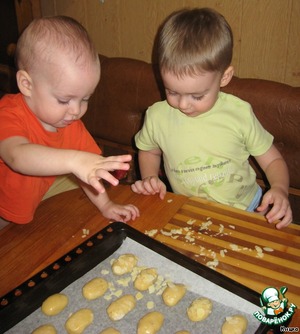 Мои любимые помощники и дегустаторы разделились во мнениях: старшенький, отказавшийся от дневного сна, к вечеру стал капризничать, отказался фоткаться, заявив: "Печенье невкусное!" *NO*А младшенькому и печенье понравилось, особенно миндаль ковырять…*OK*