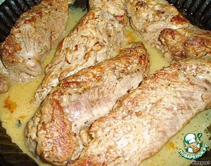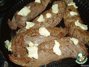 Телячья вырезка, запечeнная в масляно-коньячном соусе.