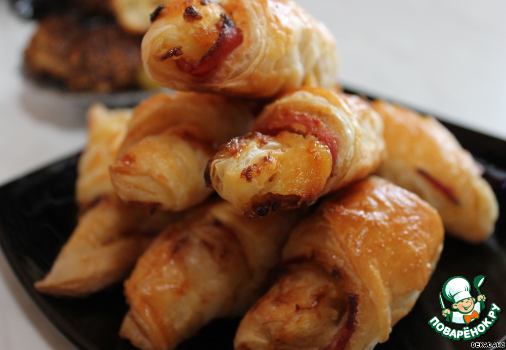 Раскатаем тесто в пласт толщиной не более 5 мм. Выкладываем на тесто ветчину.