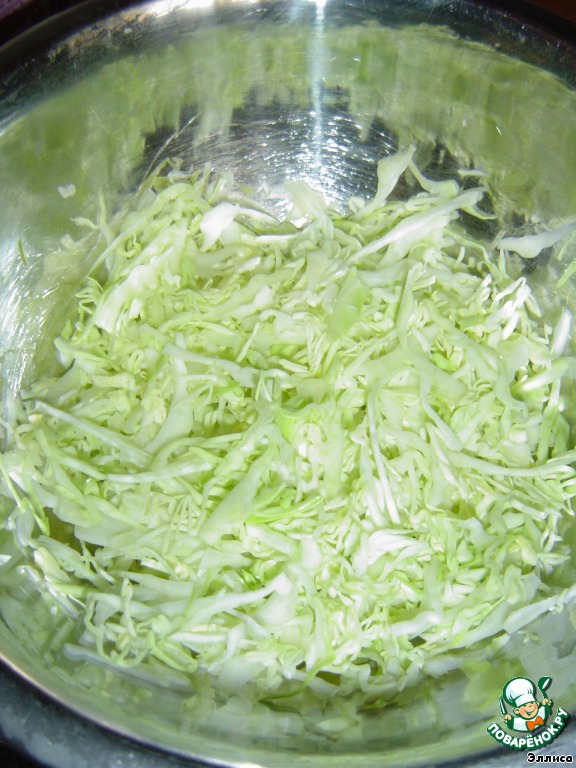 Капусту мелко нашинковать, добавить сок лимона, соль и перетереть руками.