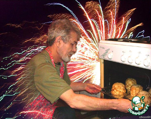 Открываем духовку и фанареем от обалденной красоты и фейерверка ароматов!!! Выкладываем нашу выпечку на большое блюдо, слегка сбрызнули водой и укутываем в 3 слоя полотенцами… Даем минут 40 остыть и понежиться в собственных ароматах нашей выпечке, а потом украшаем верхнюю часть как подсказывает фантазия… Пока младшие помощники занимались художественным оформлением одной корзинки я успел приготовить и испечь пирог (рецепт его приготовления обязательно опишу)… Женская часть торжества искушенная манящими запахами из кухни попросили больше не издеваться обилием слюноотделения и не позволили тратить время на украшение остальных корзинок…