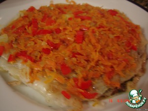 Теперь берем на лист капусты чередуя укладываем грибы, лист, морковь, лист и т. д., немного прижимая.