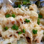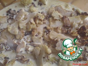 Цветную капусту нарезать тонкими кусочками и также обжарить.