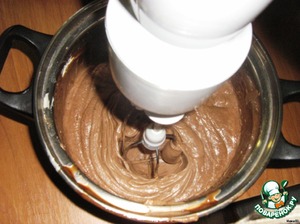 Затем вводим в остывший крем размягченное сливочное масло и взбиваем.