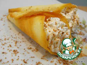 Выпекать при температуре 160-170 град., пока тесто не начнет подрумяниваться (примерно минут 10-12). Затем при помощи лопатки по одному вынимать из духовки и быстро скрутить в трубочки (кулечки). |