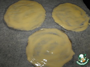 Выложить его небольшими порциями на пергамент. При помощи ложки размазать в форме круга (желательно потоньше).