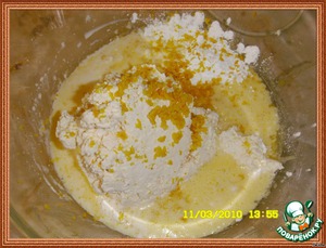 • Подмешать молоко, творог, крахмал, цедру и сок лимона