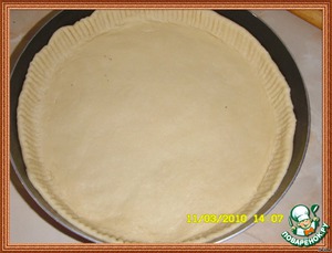 • Вымесить тесто, раскатать и положить на противень (если будете делать в форме не меньше 30 см), застеленный бумагой для выпечки. Оставить еще на 15 минут.