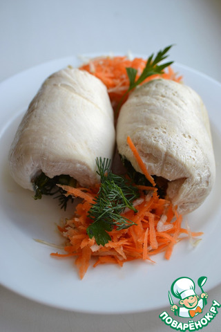[+5]Впервые попробовала корневой сельдерей. Готовила рулеты в пароварке 30 минут, завернув вместо куриной шкурки в пищевую плёнку. Из специй: для одного филе использовала куркуму, а для другого - чёрный молотый перец.