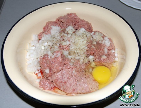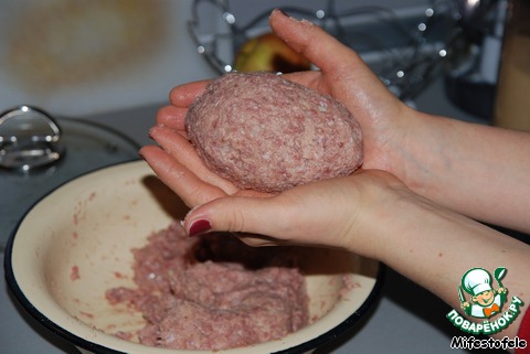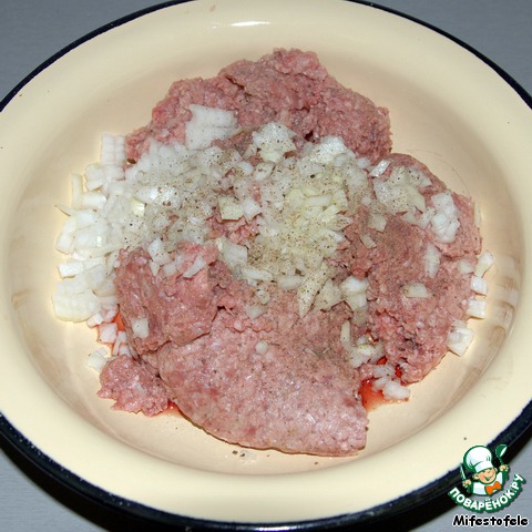 В мясной фарш добавить мелко резанный лук (или провернуть на мясорубке)