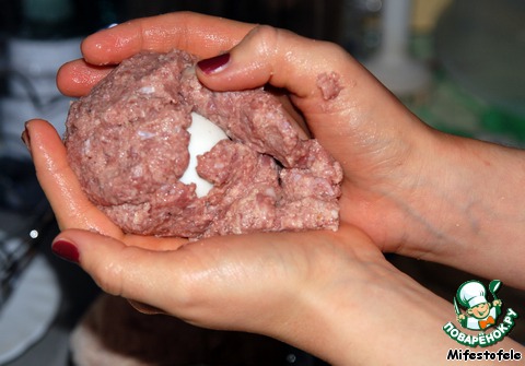 и начинаем потихоньку прятать (заворачивать) яйцо в фарш. Технология похожа на создание пирожка.