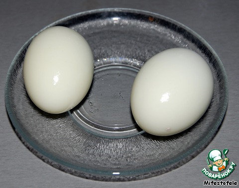 Чистим два яйца, сваренные в крутую (можно попробовать в принципе и с яйцами, сваренными в "мешочек", может получиться очень нежно)