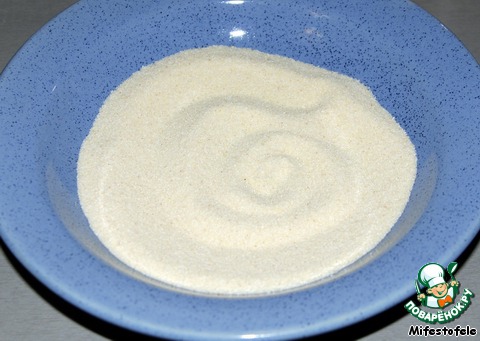 Насыпаем в тарелку панировочную смесь (продается готовая, можно сделать самим из сухарей, можно использовать манку)
