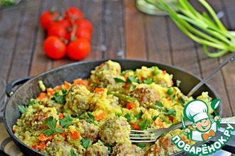 С жареных окорочков срезаем мяско и добавляем на сковородку. Обжариваем и добавляем зелень, специи и томат, подливаем немного воды и пару минут протушить. Смешиваем с кашкой. Кто так не любит, можно на кашу выложить подливку.