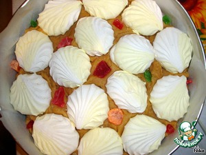 В разъёмную форму положить пергамент и уложить 15 половинок розового зефира (цукаты по Вашему желанию)